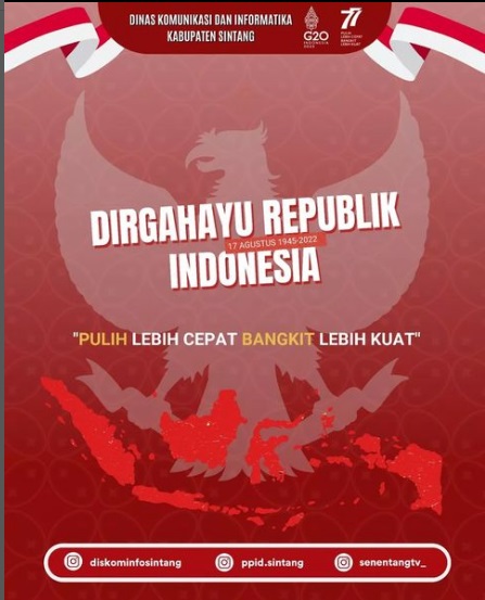 Dinas Komunikasi dan Informatika Kabupaten Sintang mengucapkan "Dirgahayu Republik Indonesia" Pulih Lebih Cepat, Bangkit Lebih Kuat.