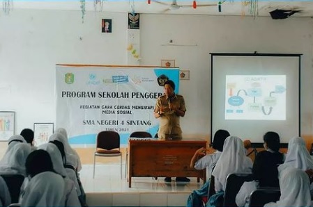 Kepala Dinas Komunikasi dan Informatika Kabupaten Sintang Kurniawan, S.Sos, M.Si, menjadi pemateri dalam Kegiatan Cara Cerdas Menyikapi Media Sosial dalam Program Sekolah Penggerak yang digagas oleh SMAN 4 Sintang bertempat di Ruang Aula SMAN 4 Sintang pada selasa pagi 11/01/22.