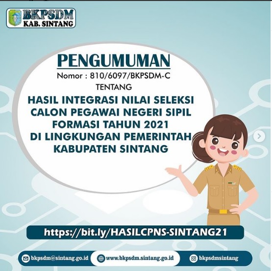 Pengumuman Juga dapat di lihat di Website BKPSDM Sintang atau link yang ada di Bio Instagram BKPSDM Sintang