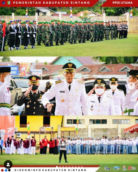 Bupati Sintang, dr. H. Jarot Winarno, M.Med., PH dan Wakil Bupati Melkianus, S.Sos, menghadiri Upacara Penurunan Sang Merah Putih memperingati Hari Ulang Tahun ke-77 Kemerdekaan Republik Indonesia Tahun 2022, pada rabu sore 17/08/22 bertempat di stadion Baning Sintang.