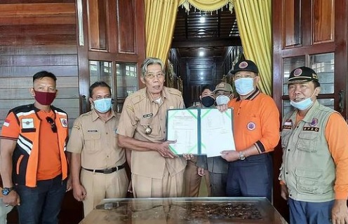 Bupati Sintang, dr. H. Jarot Winarno, M. Med. PH menerima secara simbolis bantuan untuk korban banjir dari Pemkot Pontianak, yang di serahkan oleh Kepala BPBD Kota Pontianak, Haryadi S. Triwibowo, di Pendopo Bupati Sintang, Senin pagi, 22 November 2021.