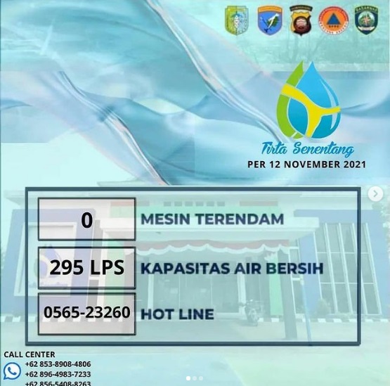 Perumda Tirta Senentang terus membantu suplay air bersih bagi korban banjir di Kecamatan Sintang. Bagi korban banjir yang memerlukan air bersih silakan hubungi nomor diatas.