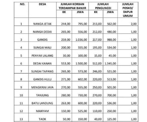 Data korban banjir di Kecamatan Dedai
