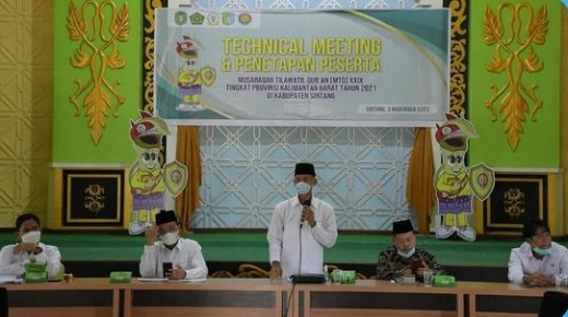 Panitia Pelaksanaan Musabaqah Tilawatil Qur an (MTQ) XXIX Tingkat Provinsi Kalimantan Barat Tahun 2021 di Kabupaten Sintang laksanakan Technical Meeting dan Penetapan Peserta Pada Rabu 3/11/21 Bertempat di Rumah Adat Melayu Tepak Sireh Sintang.
