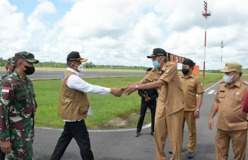 Kepala Badan Penanggulangan Bencana Republik Indonesia Letnan Jendral TNI Ganip Warsito, mendarat di Bandara Tebelian Airport Kabupaten Sintang dengan menggunakan Pesawat Caravan pada Rabu Pagi 10/11/21.